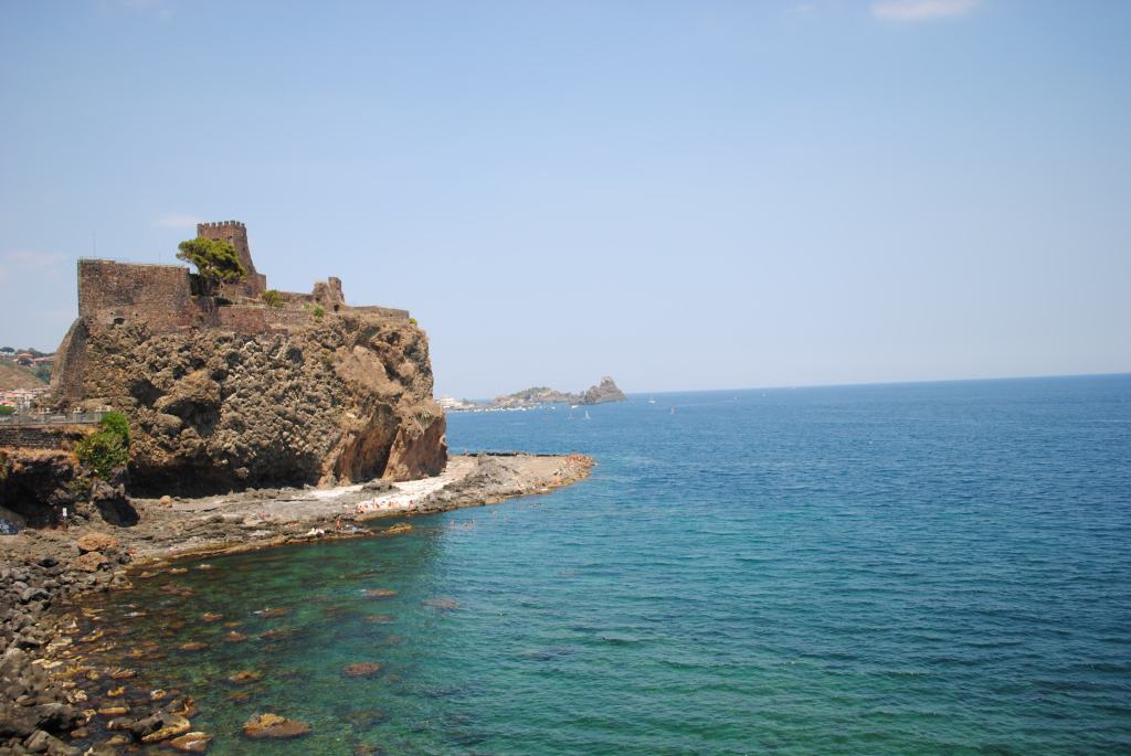 Dopo questa immersione nella natura più selvaggia, torniamo al mare ad Aci Castello. Qui, i ruderi del castello normanno sorgono su un promontorio di roccia lavica a picco sul Mar Ionio. Dopo un bagno rigenerante, ci spostiamo sulla terrazza del borgo: da qui si gode una vista a 360° che abbraccia il paese e tutto il litorale.