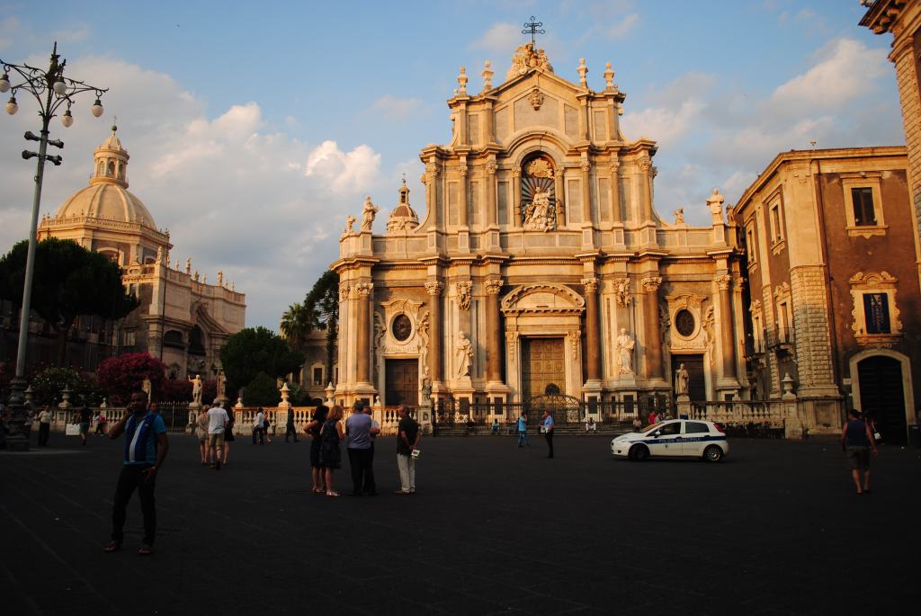 Nel tardo pomeriggio raggiungiamo Catania e iniziamo la visita della città. Si parte dal Teatro Massimo Bellini, uno dei simboli più importanti, ispirato all’Opéra Garnier di Parigi. Da lì passeggiamo fino a Piazza del Duomo, dove si trova la Cattedrale di Sant’Agata, splendida perla barocca affacciata sulla famosa fontana dell’Elefante. Proseguiamo verso il Castello Ursino, costruito per volere di Federico II di Svevia e oggi sede del Museo Civico. Poco distante, il Palazzo degli Elefanti, sede del municipio, domina la piazza con la sua architettura seicentesca.