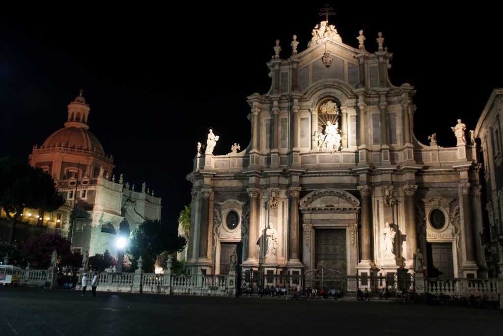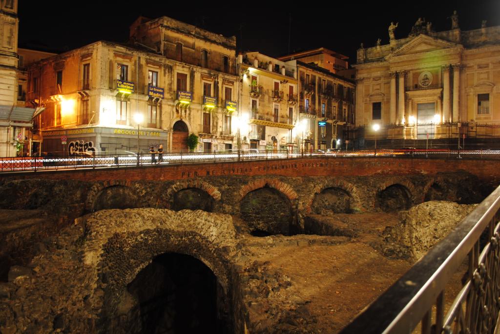 Non rinunciamo a un altro bagno pomeridiano, questa volta in una zona caratterizzata da scogliere di pietra lavica, tipiche dei territori ai piedi dell’Etna. Alle nostre spalle si intravede il Castello di Leucatia, mentre noi ci immergiamo in queste piscine naturali. La sera continua tra le vie della città: ammiriamo i resti di un anfiteatro romano e torniamo nei luoghi centrali, questa volta illuminati da una luce soffusa che rende tutto ancora più suggestivo.