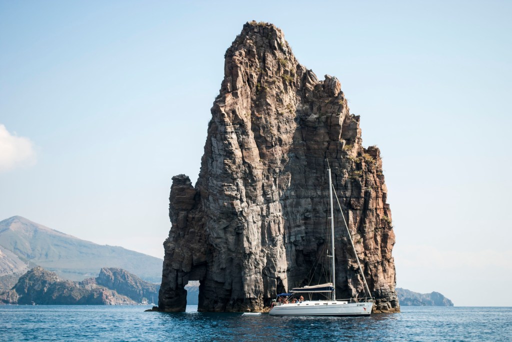Per la seconda tappa abbiamo optato un contatto più stretto con la natura siciliana, per cui nei pressi di Milazzo abbiamo deciso di montare la tenda in campeggio…siamo giovani e possiamo permettercelo! 😜😜 Tuttavia, uno dei motivi per cui abbiamo scelto di fare un viaggio in Sicilia è stata la possibilità di poter visitare l’arcipelago delle Isole Eolie, pertanto, ci imbarchiamo per un’escursione in barca verso Lipari. Il mare è limpido, trasparente. All’inizio doveva essere una di quelle crociere di gruppo, ma per un disguido con l’agenzia l’escursione era stata cancellata, ma chiaramente dopo una discussione diplomatica, abbiamo ottenuto un tour privato per visitare Lipari, riuscendo a raggiungere anche i faraglioni di Lipari, due giganti di roccia chiamati Pietra Lunga e Pietra Menalda, che segnano quasi un confine naturale con l’isola di Vulcano, talmente vicino che è davvero una esperienza inimmaginabile. Per girare l’interno dell’isola abbiamo affittato uno scooter.