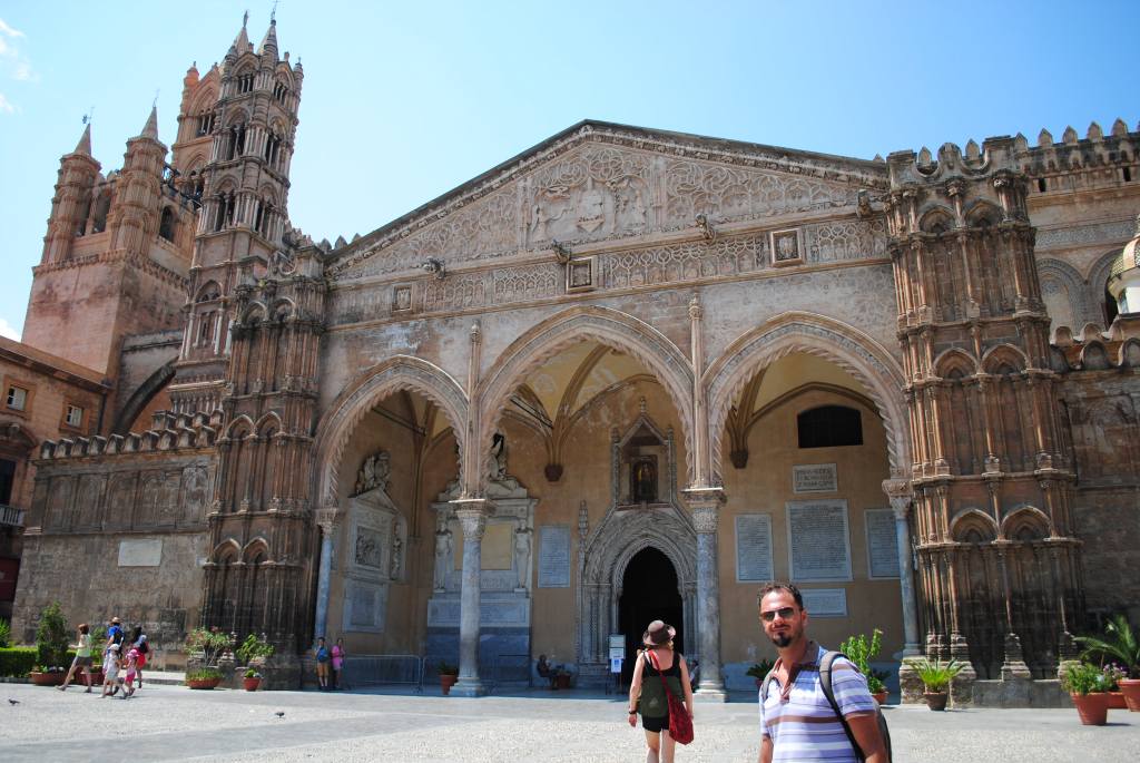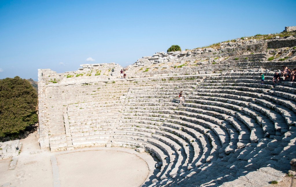 La terza tappa logistica è a Valderice in provincia di Trapani, in un altro hotel molto spartano e a buon prezzo, ma con una colazione davvero buona! A Cefalù visitiamo la Basilica Cattedrale della Trasfigurazione, esempio straordinario di architettura arabo-normanna. L’interno, con i suoi mosaici dorati, è affascinante, mentre le due torri rendono il duomo immediatamente riconoscibile. Ci concediamo un bagno nella spiaggia cittadina, perfetto per rinfrescarsi. Nel pomeriggio raggiungiamo il Parco archeologico di Segesta: il teatro, risalente al II secolo a.C.. È costruito sulla cima del Monte Barbaro, a circa 400 metri di altezza. Come molti teatri antichi, ha una acustica sorprendente: anche parlando a bassa voce sul palco, il suono arriva chiaramente fino alle gradinate più alte. Il tempio dorico, probabilmente dedicato ad Afrodite, ci riporta indietro nel tempo. La sua caratteristica più sorprendente è che non è mai stato completato, infatti, le colonne sono lisce, non rifinite, probabilmente una guerra o qualche cambiamento politico ne ha interrotto la costruzione. È davvero un angolo di pace e stupore!