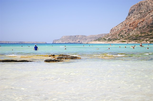 A conti fatti ci vogliono un paio di ore per raggiungere la Laguna di Balos dal Corinna Mare tra strada statale, sterrato di circa 7 Km e percorso trekking sotto il sole cocente, ma è un’esperienza da fare assolutamente, una delle più belle spiagge mai viste, in grado di competere con le acque cristalline dei Caraibi. La spiaggia di Balos si raggiunge solo a piedi, dopo aver lasciato la macchina in un parcheggio e percorso un sentiero in dislivello di circa 200 metri per un totale di una ventina di minuti. Dopo una decina di minuti a piedi si apre la vista spettacolare della Baia e della Laguna di Balos, quella che viene immortalata in centinaia di fotografie. Per i soggetti meno avventurieri è possibile arrivarci con un barcone che parte dal porto di Kissamos e visita anche l’isola di Gramvousa, giungendo nel pomeriggio a Balos, ma non sanno cosa si perdono!!!