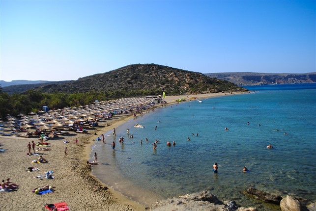 La Spiaggia di Vai, che vale davvero la pena di raggiungere per bagnarsi nelle sua acque fresche e cristalline, si trova alla punta nord-est di Creta ed è una delle poche spiagge sabbiose praticabili di tutto il settore est, forse l’unica attrezzata e confortevole per le famiglie. Si trova nei pressi di uno dei palmeti più grandi d’Europa, il parcheggio è ampio e a pagamento, ci sono ombrelloni, sdraio, un bar che fa anche panini e qualche bancarella per souvenirs e attrezzatura varia per il mare. Sulla destra della spiaggia ci sono degli scalini che portano su un promontorio da cui si può ammirare il bellissimo panorama dell’Isola, ma proseguendo lungo il sentiero si può raggiungere la Spiaggia Psili Ammos e starsene in tranquillità.
