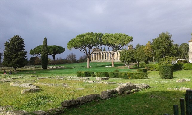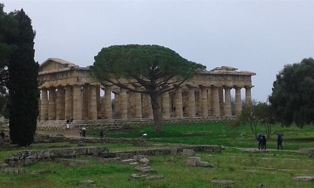 Il secondo giorno della nostra gita a Salerno con gli amici comincia nella più totale incertezza perché il tempo non promette nulla di buono. Ad ogni modo, decidiamo di recarci a Paestum per un giretto, in un’ora si raggiunge agevolmente, poi a pranzo dovremmo rientrare al Fondo Lazzaro.