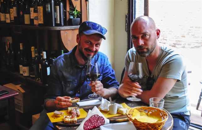 Nemmeno il tempo di mettere piede nel borghetto che decidiamo di fermarci in un’osteria, l‘Enoteca Boccaccio, per l’appunto, per rinfrescarci: fu così che ci stordimmo con, nell’ordine, una Passerina, una Vernaccia di San Gimignano e, per non farci mancare nulla, un Chianti, il tutto accompagnato con salumi e formaggi tipici della zona…anche grazie al vino, tutta l’esperienza di Certaldo è stata vista in un’ottica molto più affascinante e gioviale!