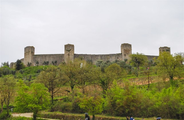 La tappa successiva è Monteriggioni, ma, una volta raggiunto il paesino, comincia a piovigginare, bisogna decidere sul da farsi….e, ovviamente, decidiamo di visitarlo con ombrello alla mano! Monteriggioni è una perla nella campagna toscana, piccola e tenuta bene, abitata da poche anime e presa d’assalto dai turisti. Le mura sono completamente percorribili, ma in alternativa si può fare una passeggiata da Porta Franca a Porta Fiorentina, passando per piazza Roma. La pioggia aumenta, ma noi, da veri temerari, continuiamo la nostra passeggiata, anche alla ricerca di qualcosa da mettere sotto i denti e l’Osteria Antico Travaglio fa proprio al nostro caso! L’unica cosa che ci ha lasciati perplessi di Monteriggioni è stata la scelta di aver sistemato al centro della piazza, l’unica del paese, molte bancarelle, che impedivano di percepire la bellezza del paesino nel suo complesso.