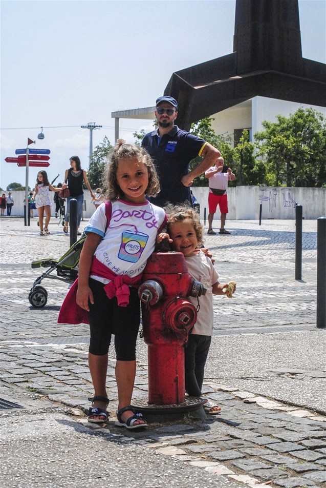 La Torre di Belem è una bellissima costruzione nel mare, peccato che ci sia la fila per entrare, per cui decidiamo di soprassedere e passare oltre, in direzione Padrao dos Discobrimentos, una struttura imponente a forma di caravella che funziona da museo e al tempo stesso da Miraduro. Qui con le bambine ci fanno saltare la fila, per cui dediciamo di entrare per scattare qualche foto dall’alto. È sufficiente utilizzare il sottopasso per ritrovarsi nel Jardim da Praca do Império e poi ammirare il Monasterio dos Jeronimos e la Paroquia de Santa Maria de Belém, dove ci tocca fare la fila sotto il sole, salvo poi essere ripresi dal simpaticissimo custode all’ingresso, gratuito, che ci fa notare che in Portogallo, come in Italia, dice lui, le famiglie con i bambini non fanno le file!!!