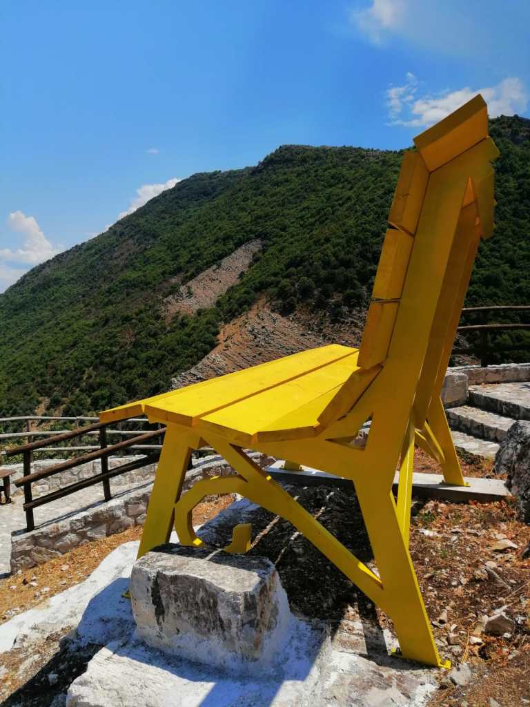 Di ritorno dall’Irpinia per una cena sotto le stelle nella notte di San Lorenzo presso la Tenuta Cavalier Pepe, abbiamo approfittato per raggiungere la Big Bench tutta gialla nel piccolo paese salernitano di Sicignano degli Alburni.