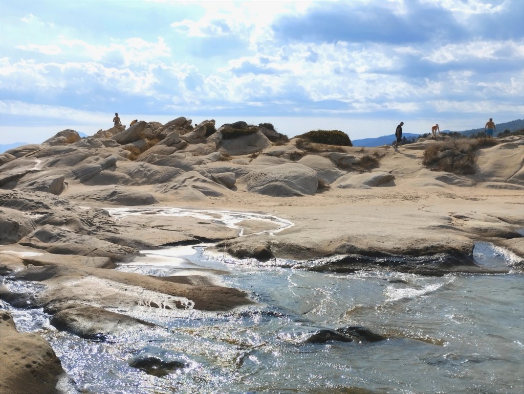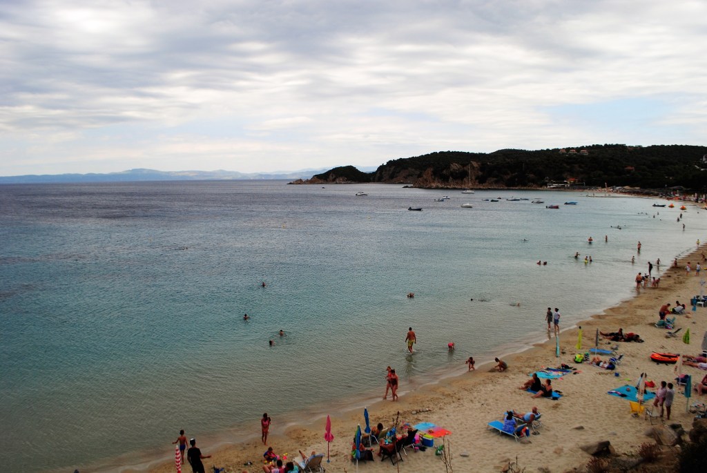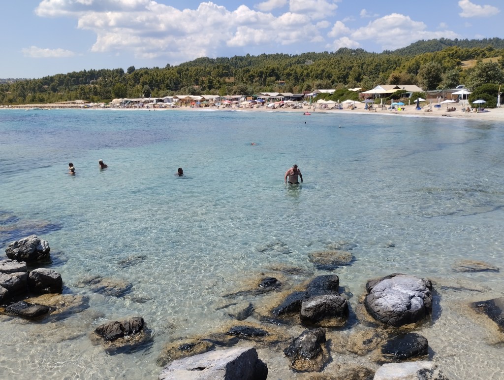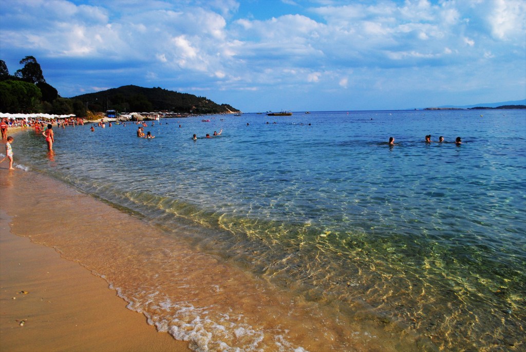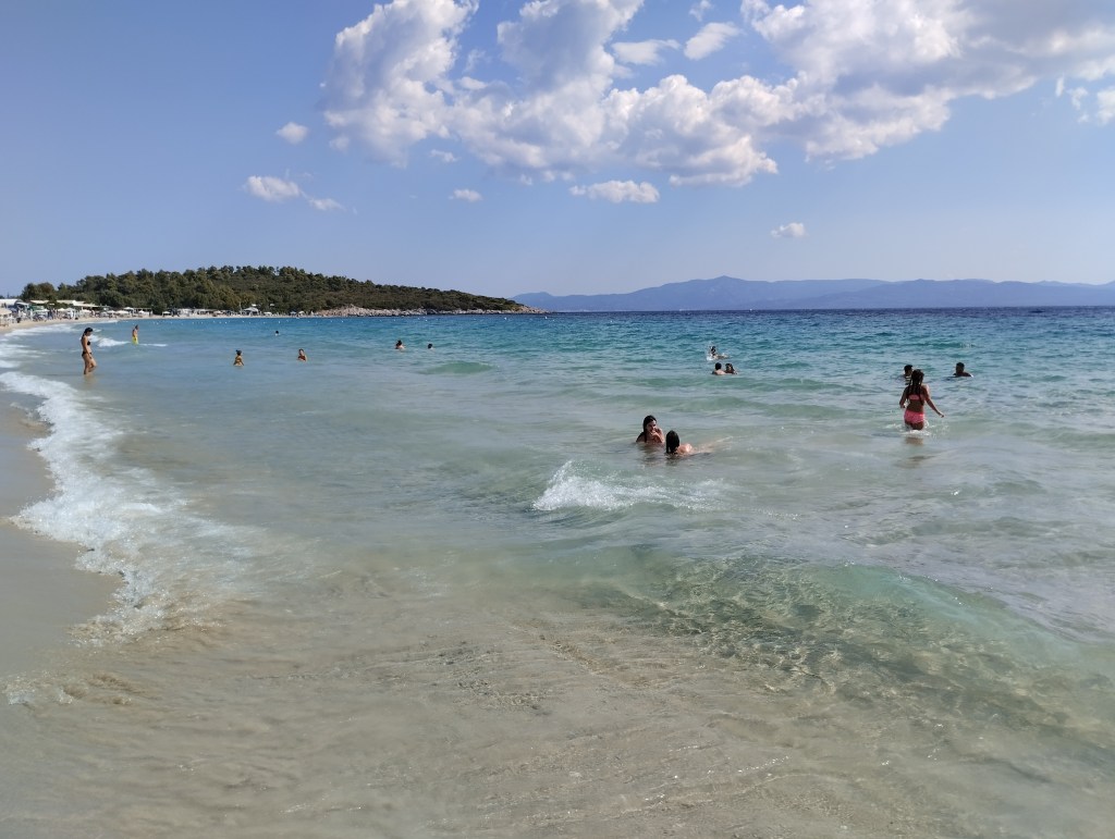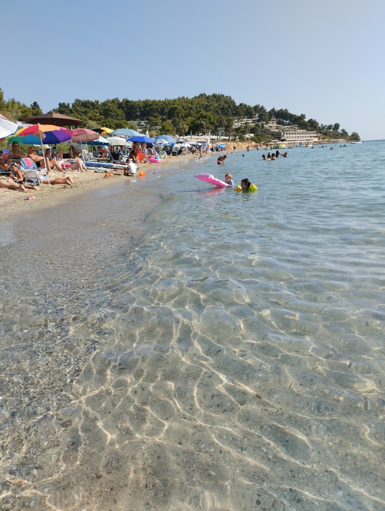 L’Asteris Hotel si trova nella parte iniziale del dito centrale della Calcidica, posizione strategica per raggiungere nell’arco di poco più di un’ora tutto il suo territorio. Oggi ci si dirige verso la Golden Beach a Pallini, sul lato rivolto a est di Kassandra con poco più di un’ora di percorso in auto. La spiaggia è attrezzata con suggestivi lidi e beach bar, ma la spiaggia e il parcheggio libero sono sempre garantiti e considerando che nel nostro programma ci sono più location al giorno, non ci va di investire in ombrelloni e lettini…del resto il relax non fa per noi! Un mare dall’acqua spettacolare si staglia su una sabbia chiarissima, con pochi scogli, adatta alle bambine perché il fondale degrada molto lentamente. La bellezza della Penisola Calcidica, tuttavia, sta in un fatto che bisogna sapere nel momento in cui ci si trova in quelle zone, per evitare di rovinarsi le vacanze: se c’è vento e mare mosso sul versante orientale dei tre denti, occorre recarsi sul versante esposto a ovest e viceversa!