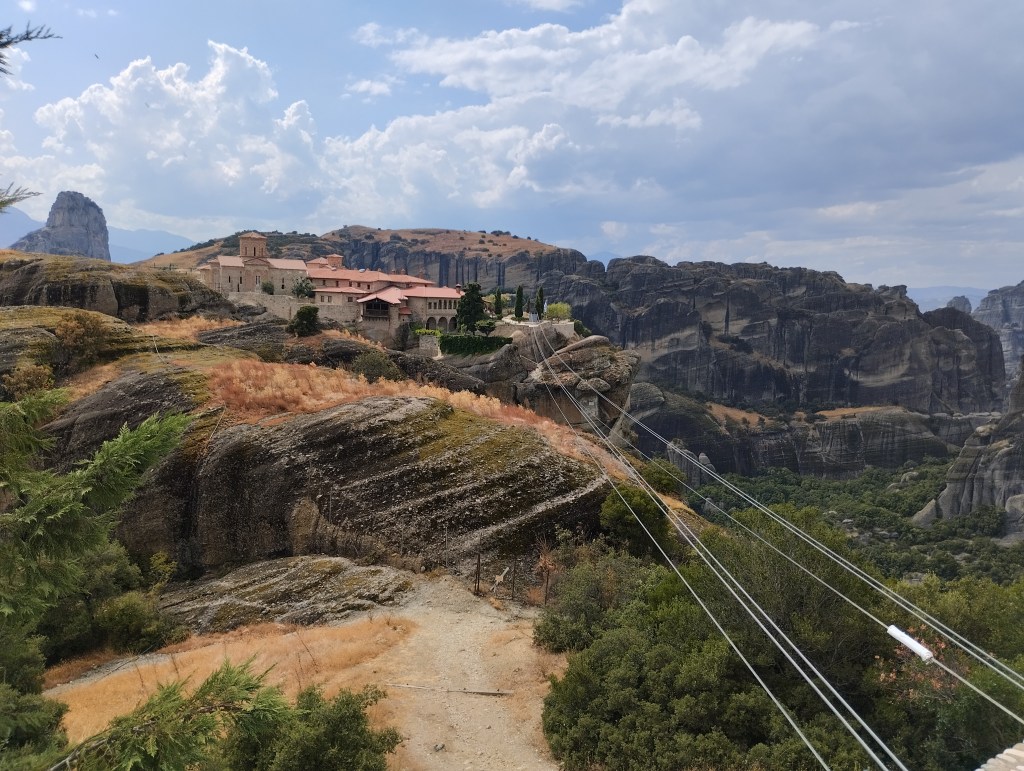 Essendo arrivati a Kalampaka di giovedì e, tra l’altro, nel primo pomeriggio, riusciamo a visitare solo la Grande Meteora, il più grande a antico complesso, Varlaam, che è nelle sue immediate vicinanze, e poi Agios Nikolaos. Per visitare ciascun monastero è necessario pagare un biglietto di 3 euro, ma è anche importante sapere che le donne devono indossare una gonna, infatti nel caso in cui abbiano dei pantaloni, bisogna comprare in loco un foulard da mettere intorno al cinto.