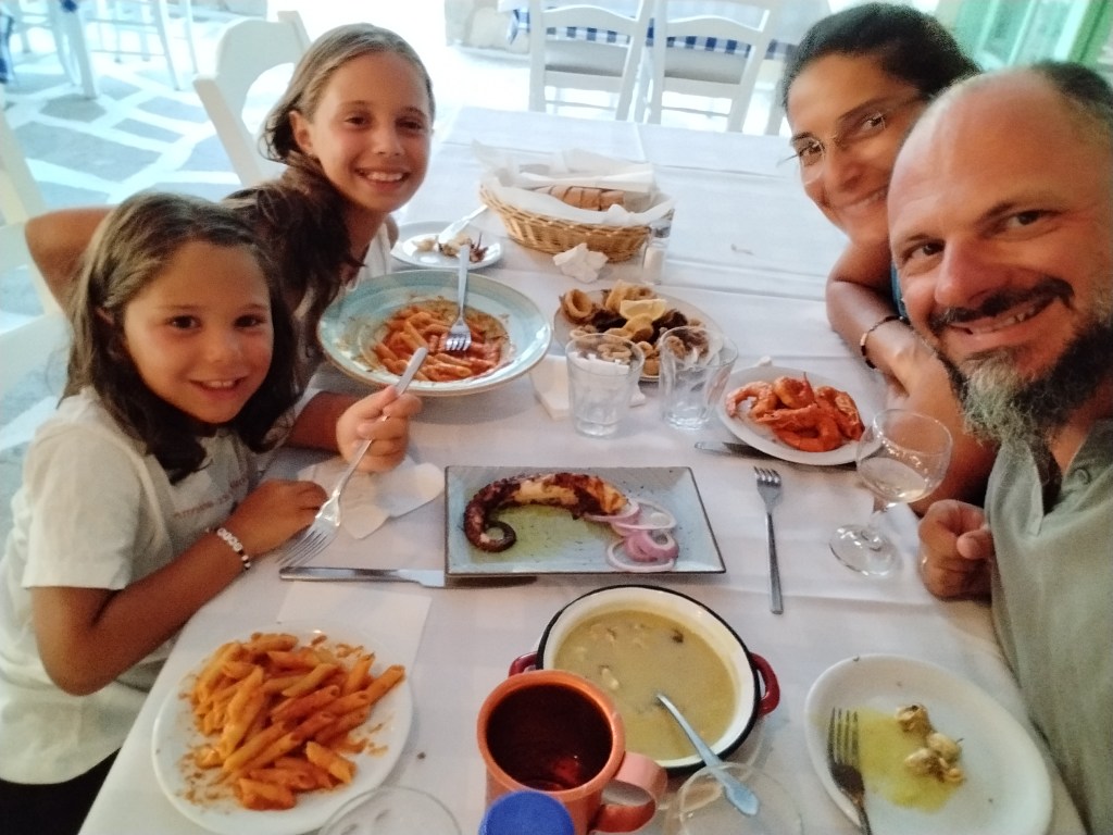 Prima di lasciare Sani Beach occorre riempire il pancino e la Taverna Anemos sulla spiaggia è la location migliore per attendere il tramonto degustando moussels saganaki (cozze con un guazzetto alla mostarda), polpo alla griglia, calamari fritti e pasta con i gamberoni per una dignitosa cena di ferragosto…ovviamente a prezzi più che convenienti!