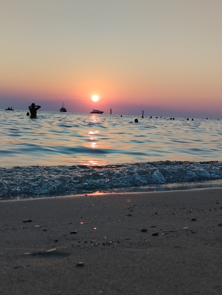 La giornata prosegue con un bagno in una spiaggia della città di Saranda al modico prezzo di 15 euro per due lettini in una zona ombreggiata (ce n’erano anche a 10 euro nelle ultime file e 30 nelle prime). Qui il mare non ci ha colpiti in maniera particolare, sia perché i colori non erano paragonabili a quelli di Ksamil sia perché noi non amiamo molto le spiagge con i ciottoli, ma anche perché nella baia che abbiamo scelto l’acqua non era molto pulita (forse per la quantità di bagnanti). Tuttavia, il panorama che si stagliava davanti era davvero notevole, infatti si poteva ammirare l’intera isola di Corfù insieme ad un tramonto mozzafiato.