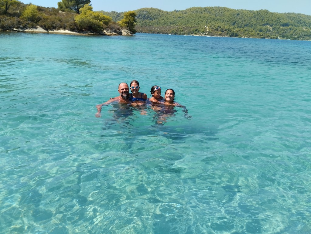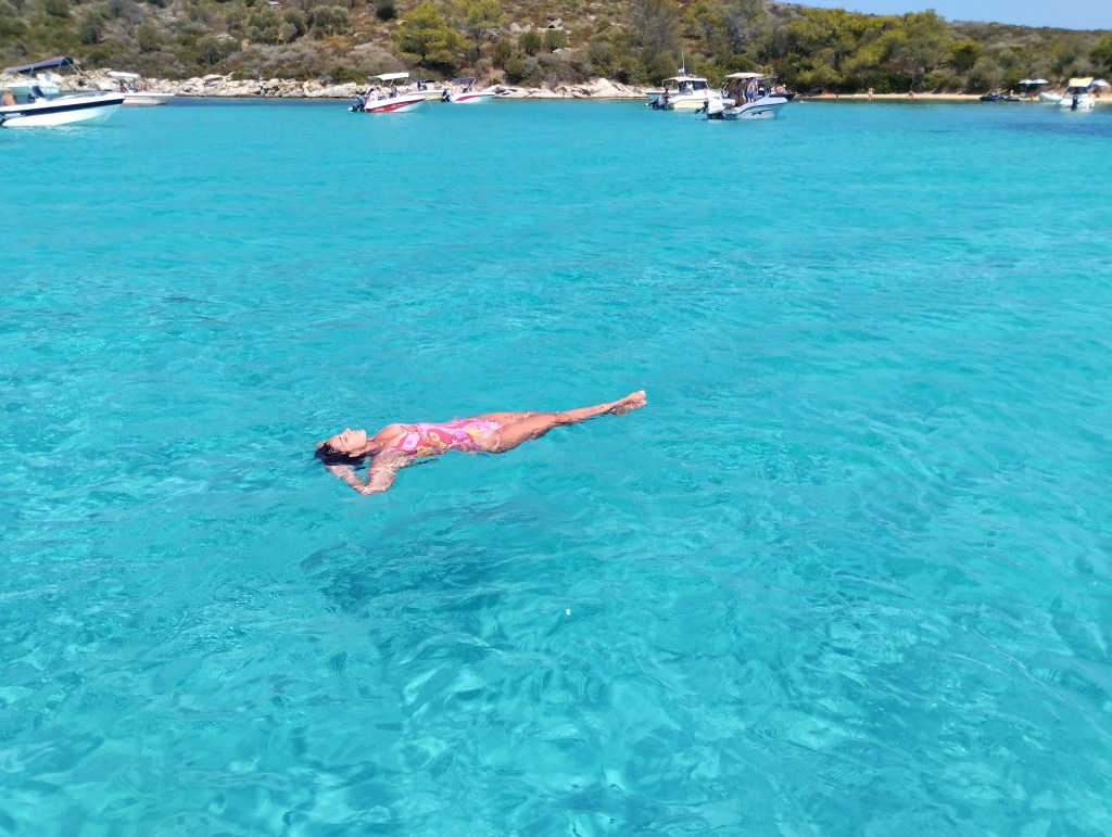 L’uscita con Vangeli (Angelo per gli italiani) si rivela la più bella esperienza di tutta la vacanza. Ci affidiamo totalmente alla conoscenza approfondita del nostro skipper, il quale ci conduce prima nella Koumaroudes Beach poi in altre spiagge e, infine, nell’affollata Blue Lagoon, la più spettacolare delle Diaporos, rimanendo sempre a nostra disposizione per foto ed ogni altra esigenza.