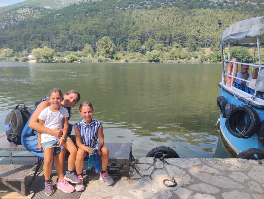 Approfittiamo, tuttavia, per spezzare un po’ il viaggio di ritorno e ci fermiamo sul Lago di Pamvotida a Ioannina…è evidente che non vogliamo tornare a casa. Il lago non è balneabile, ma Ioannina si rivela una caratteristica cittadina con richiami più balcanici, anche turchi, che spiccatamente greci. Non a caso in città e sull’isoletta situata all’interno del lago, che si può visitare grazie ad un battello che fa la spola (al costo di 2 euro a persona, bambini/e gratis fino ai 5 anni), vi è la celebrazione del personaggio di Alì Pascià Telepeni, politico e militare albanese…il cui nome è diventato un tormentone per le nostre bambine!