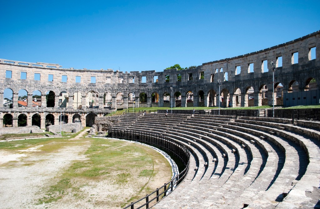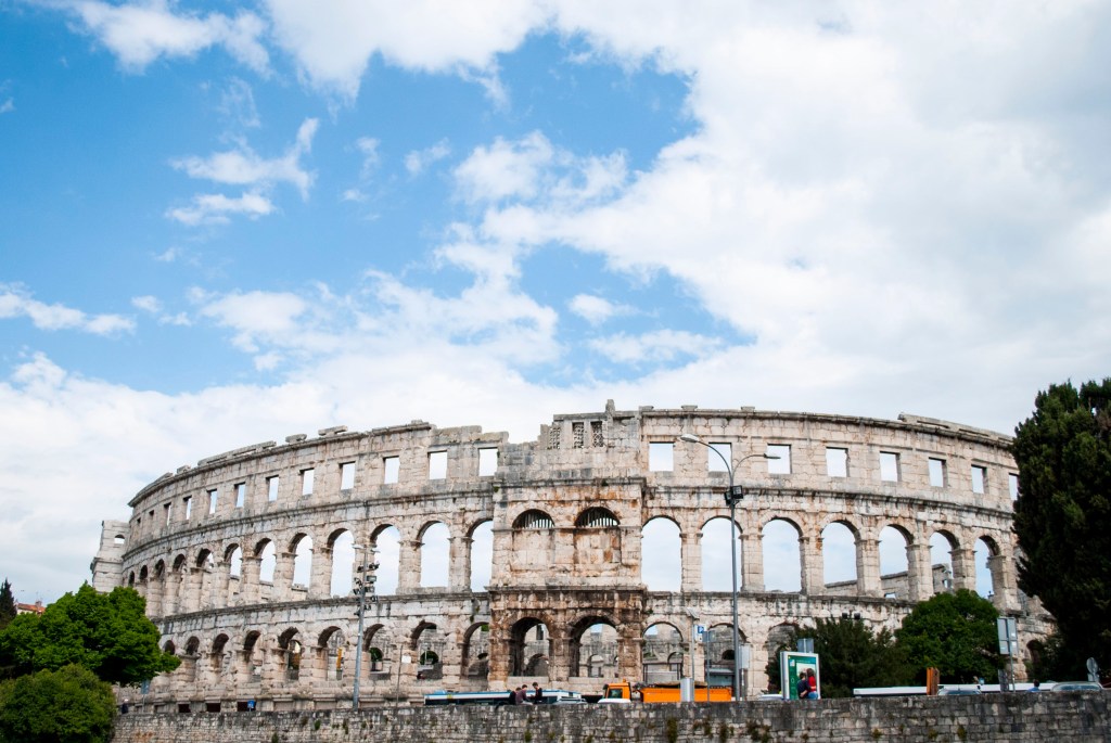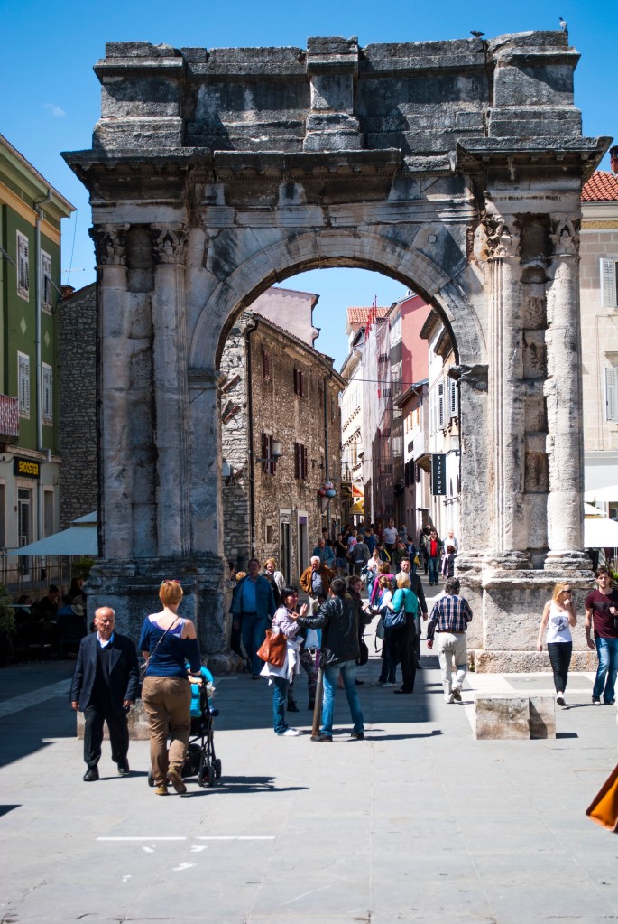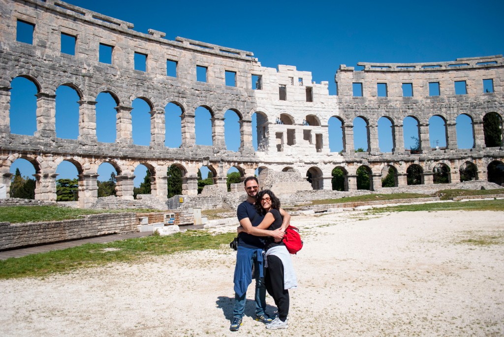 La prima città che visitiamo è Pula, una città che conserva in modo straordinario le testimonianze dell’epoca romana. Il centro storico è raccolto e si visita facilmente a piedi in poche ore. L’Arena è il monumento più importante: uno degli anfiteatri meglio conservati al mondo, ancora oggi utilizzato per eventi. A breve distanza si trovano il Tempio di Augusto e della dea Roma e Piazza del Foro, che rappresentano il cuore dell’antica città romana. La Concattedrale dell’Assunzione e l’Arco dei Sergi completano la nostra visita di questa perla della Croazia. Ci fermiamo a mangiare un’ottima frittura di pesce prima di riprendere il nostro viaggio.