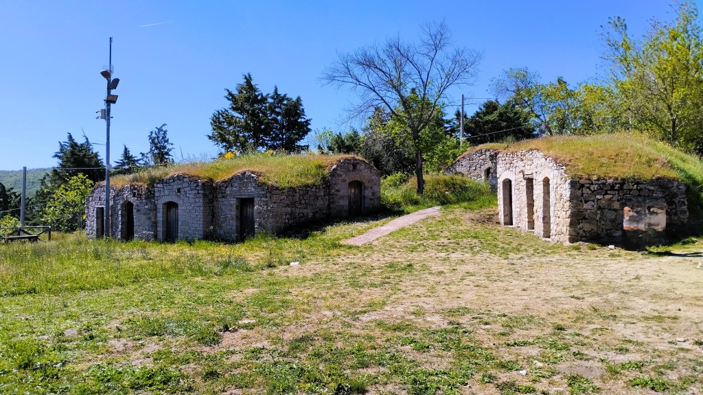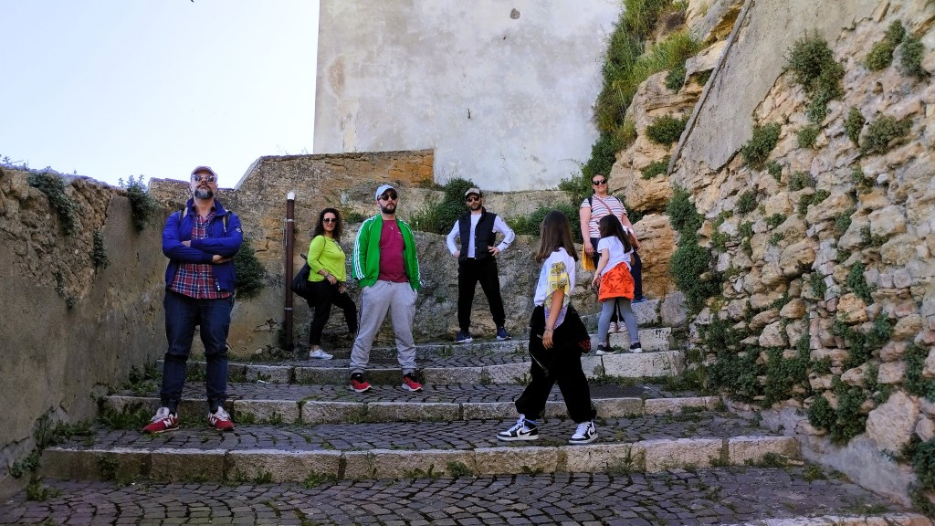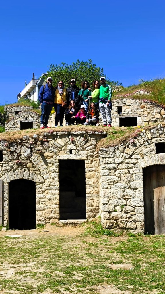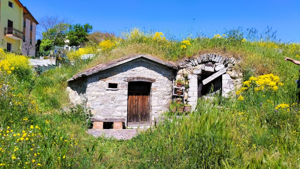 Noi tutti rimaniamo abbastanza colpiti da quello che vediamo, ci rifugiamo anche in uno di questi palmenti trasformato in un piccolo shop, dove un gentile signore ci offre un assaggio del vino che produce, le bambine stuzzicano qualche tarallino offerto e poi ci sediamo, baciati dal tiepido sole di maggio, sulle panchine per rifocillarci e consumare il nostro pranzo a sacco.